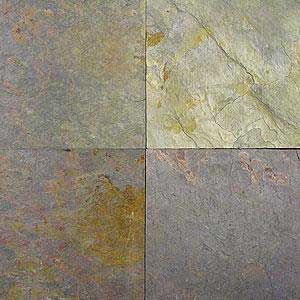 板岩,正面是自然面,背面磨平。厚度12-14毫米。板面平整,板质结实。常用于铺地面,墙面。